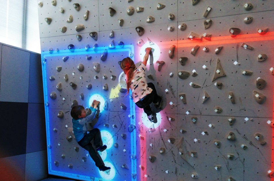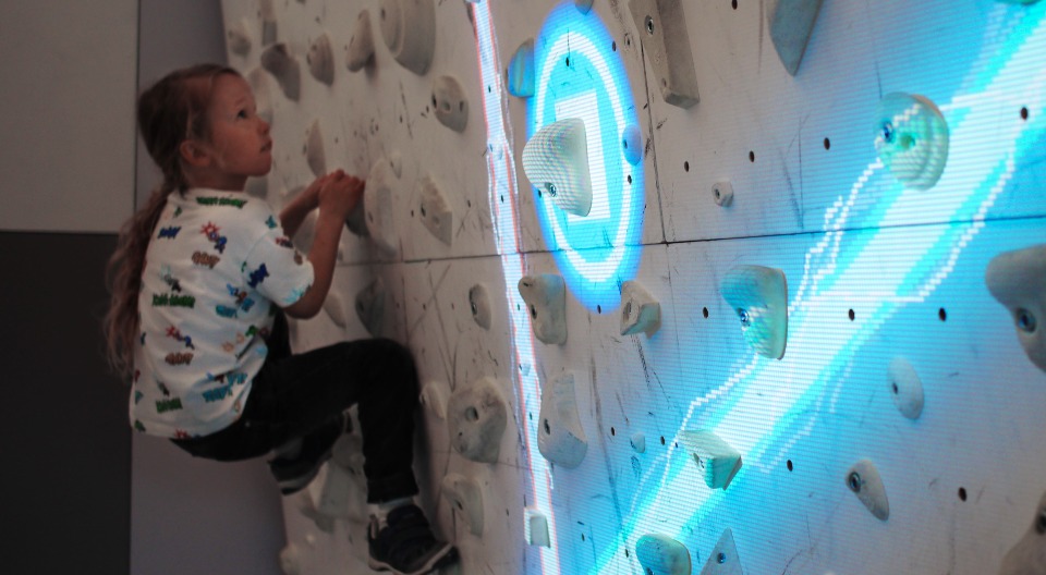 Le mûr d'escalade Valo Climb est la première plateforme de jeux interactifs au monde pour les murs d’escalade. Cette technologie de jeu active invite tout le monde, des plus jeunes enfants aux grimpeurs les plus chevronnés à passer un super moment (et à s’entraîner physiquement en même temps !)