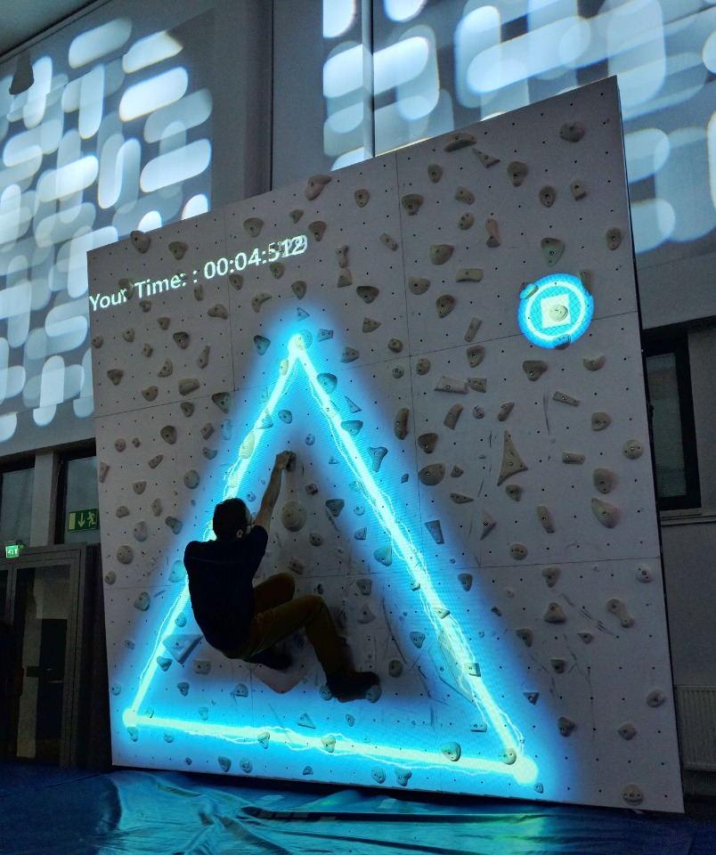 ValoClimb combine le suivi des mouvements et la projection graphique pour transformer un mur d’escalade classique en un véritable jeu vidéo grandeur nature. Il propose une expérience immersive et active, adaptée aux enfants, aux débutants comme aux passionnés d’escalade.