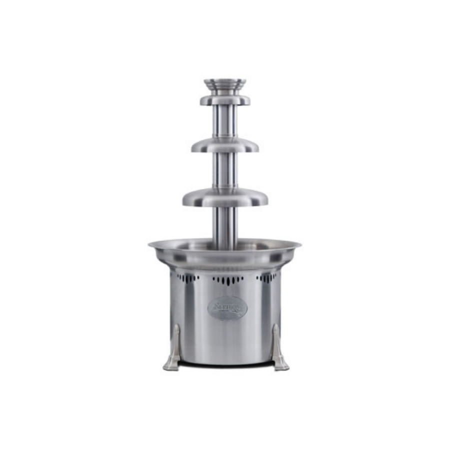 Cette fontaine à chocolat est un dispositif qui sert pour la fondue au chocolat noir ou brun. Elle provient de deux inventions ingénieuses: le poêlon à chocolat et la fontaine à champagne. Elle réunit les gens pour un moment chaleureux et de partage.